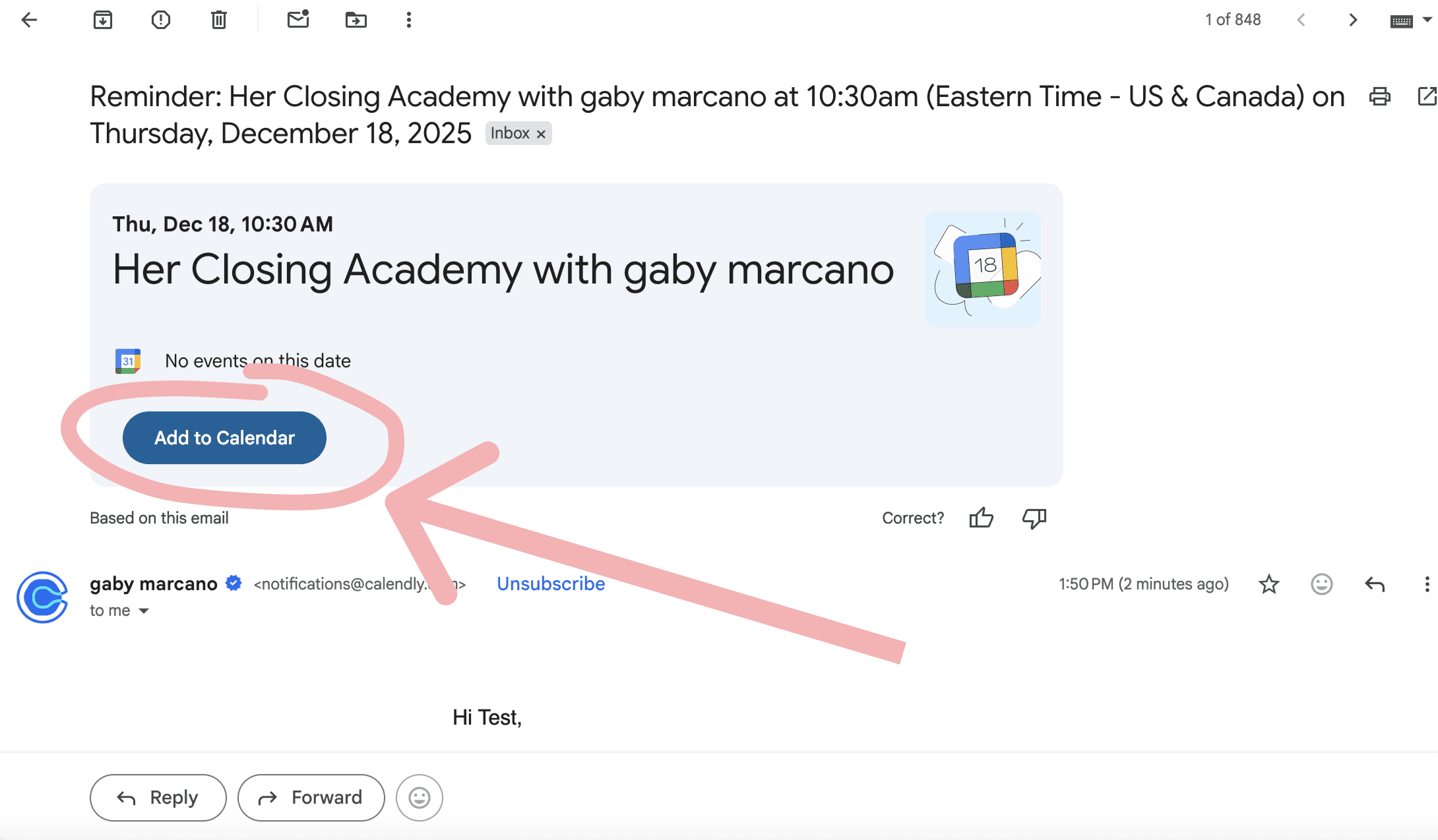 Step 2: In your email, confirm the calendar invite from our team